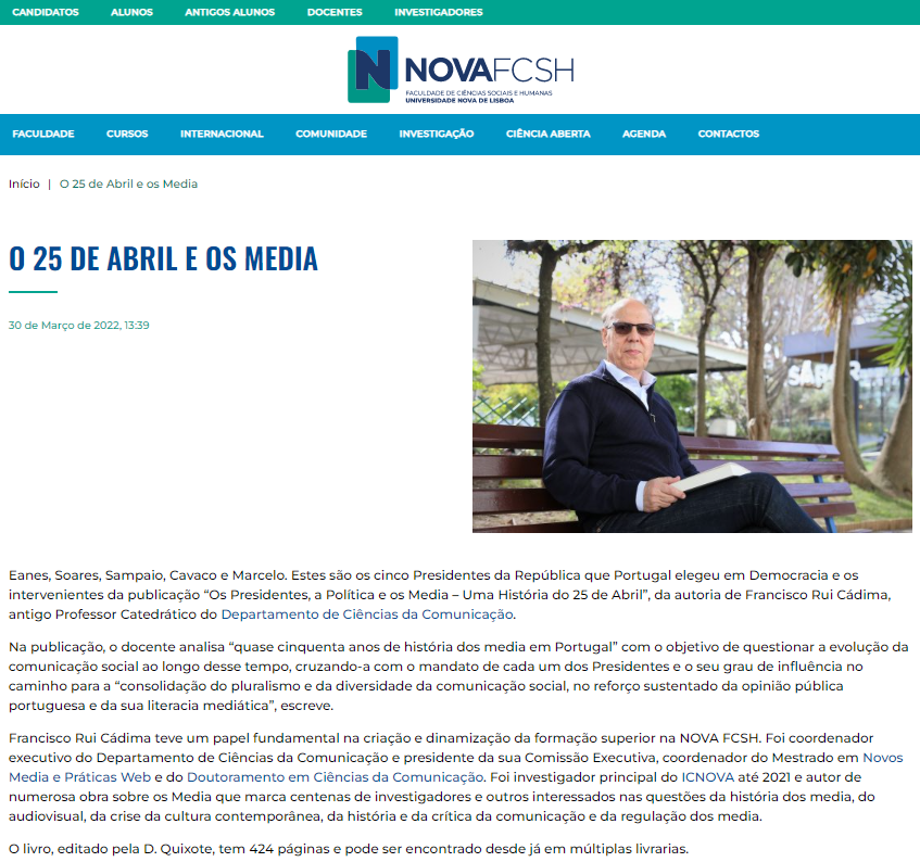 Entrevista à Visão nº 1517. 31 de março de 2022(Foto de Luís Reis – GCM FCSH. Website da FCSH)